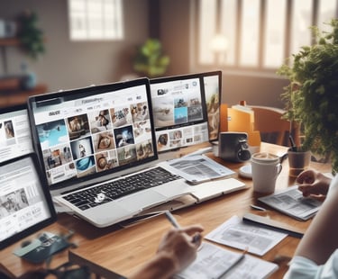 Criação e edição de imagens e vídeos, unindo comunicação visual e identidade de marca para mídias digitais e páginas de venda.